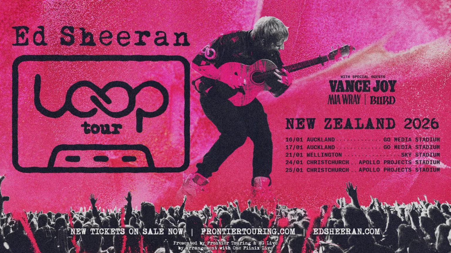 Ed Sheeran is bringing his record-breaking stadium tour back to New Zealand this summer, launching The Loop Tour right here in Aotearoa. It’s the global kick-off, and fans across Auckland, Wellington and Christchurch will be the first in the world to experience the brand-new live show, powered by a next-level production, a setlist stacked with hits and deep cuts, and three standout support acts.