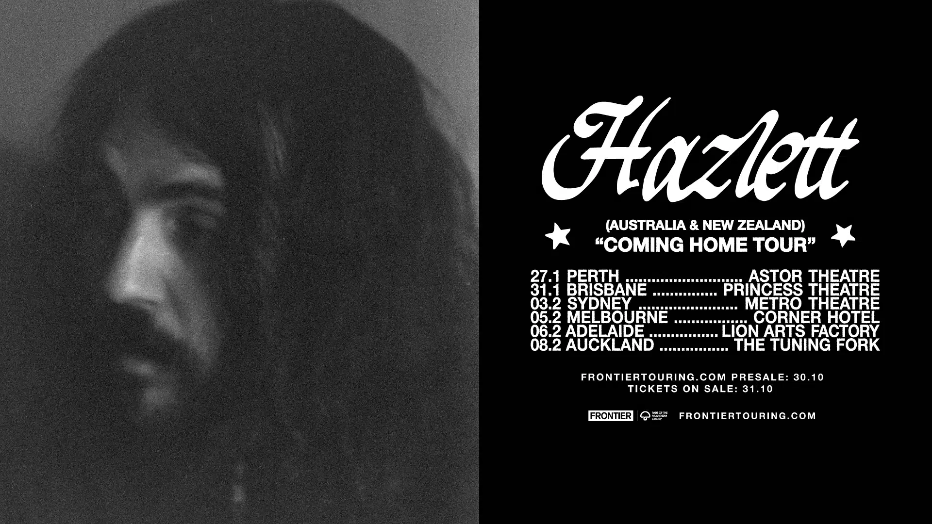 Hazlett is finally coming home. After years of quietly building a global fanbase from his adopted home in Stockholm, the Brisbane-born indie-folk artist has announced his first-ever headline tour across Australia and New Zealand, landing in January and February 2026. It’s a long-awaited moment for fans who’ve followed him through the soft ache of Bloom Mountain to the tender honesty of his latest release, last night you said you missed me.