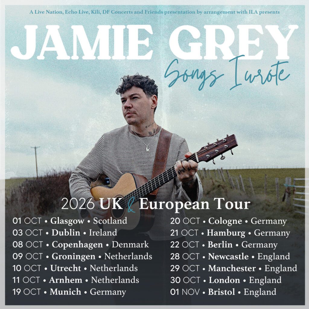 Jamie Grey has been dreaming about this for a while. This October, he finally gets to live it — heading out on his first full UK and European headline tour, the Songs I Wrote Tour, armed with nothing but an acoustic guitar and a set of songs that have been quietly winning people over since 2020.