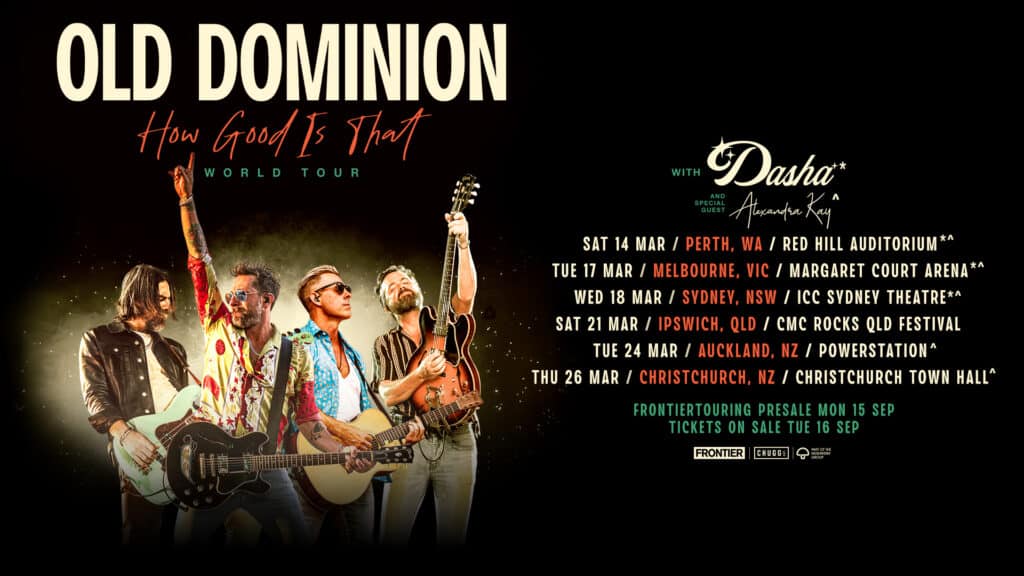 Old Dominion are kicking off their How Good Is That – World Tour in Australia before they hit NZ, with Dasha and Alexandra Kay both supporting across all Aussie dates. Here’s where you can catch them: