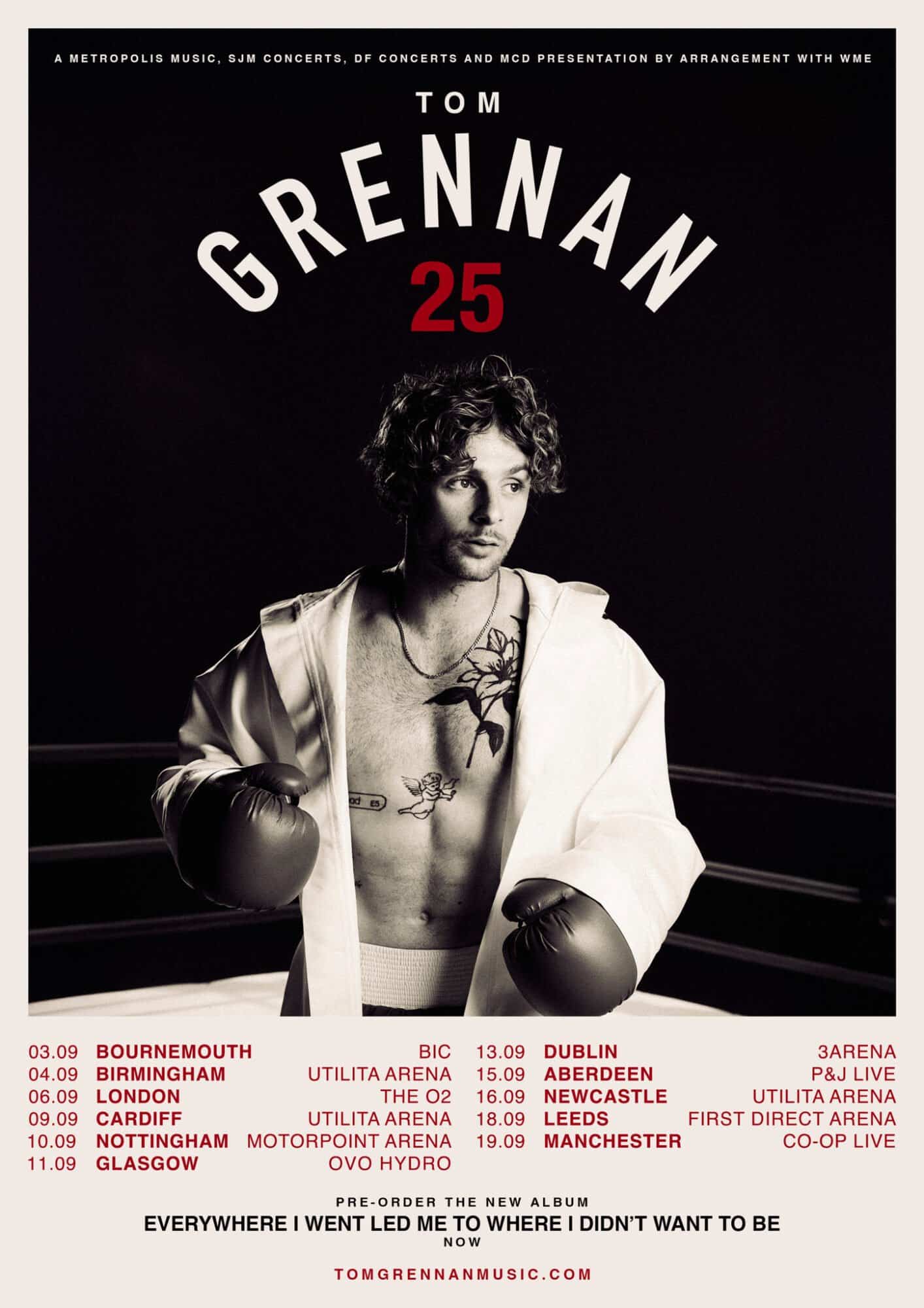 Dropping 15 August 2025, Everywhere I Went Led Me To Where I Didn’t Want To Be follows 2023’s What Ifs & Maybes, which hit Number One in the UK charts. Tom teamed up with Justin Tranter, the hitmaker behind tracks for Britney Spears, Dua Lipa, Linkin Park, and Fall Out Boy — for a record full of huge, feel-good pop anthems.