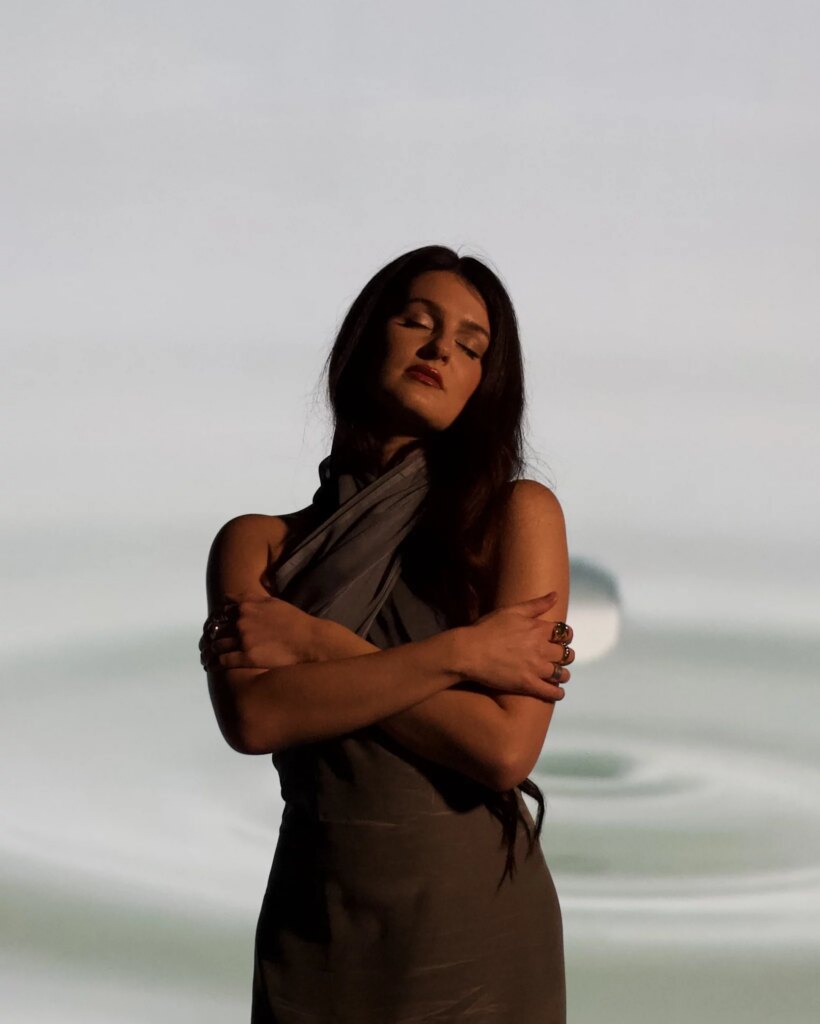 The video for ‘Hold Me’ matches the song’s emotional tone. Shot in collaboration with Westall Road and directed by Laila Ben-Brahim and Marlan Prabahar, the visual was one part cinematic mood piece, one part endurance challenge, filmed in the same 18-hour window as two other upcoming videos. alayna wrapped herself in silver fabric, stood beneath projected oceans and skies, and let the visuals echo the track’s themes: magnitude, vulnerability, and the stillness of wanting something you can’t quite reach.