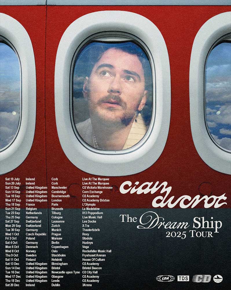 Cian’s next era isn’t just sonic — it’s live. He’s taking Little Dreaming on the road with The Dream Ship Tour across the UK, Ireland, and Europe, culminating in a massive homecoming show at Dublin’s 3Arena this December.