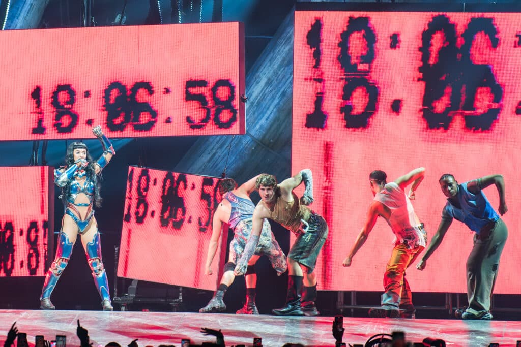There were enemies. There were drones. There was a lightsaber fight. Katy came up from under the stage with a red laser sword and a robotic arm that literally set the stage on fire. Her cyber-bra had glowing red lights on it. She defeated the “mainframe.” There were butterflies trapped in tubes. The storyline somehow made you feel things.