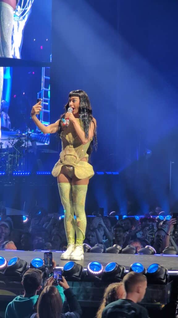 She played the hits early (TGIF came in hot), but in between the bangers there were moments of pure Katy weirdness, the kind only she can pull off. At one point she borrowed a fan’s phone mid-song and made it part of the set. Then she teased a few bars of Peacock before shutting it down with a cheeky grin, reminding everyone her daughter was there. “That’s all you’re getting,” she joked. Crowd booed. She laughed. Icon behaviour.