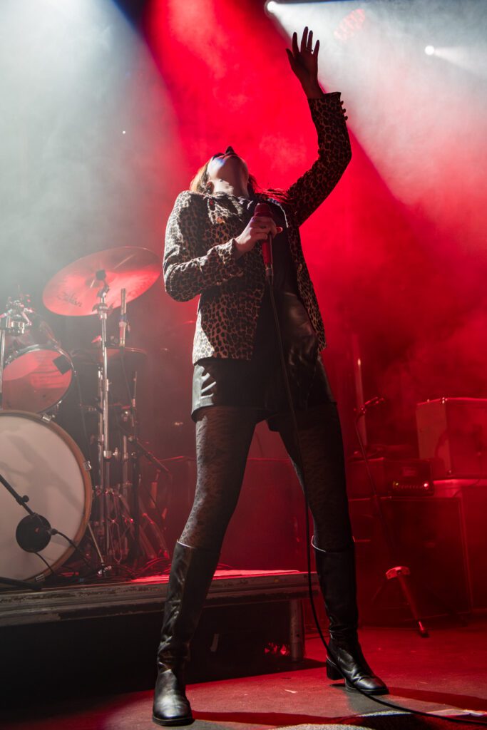 Support slots rarely feel like a full body workout, but Goo clearly didn’t get the memo. From the first punch of the drums under moody red and blue lights, the band launched into their set like it was their headline moment. Their drummer, kept a relentlessly heavy beat, while the long-haired guitarist thrashed and danced like someone had spiked his Red Bull. The vocalist – all polite giggles and “Hello Nottingham” sweetness, joined him in bursts, jumping into shared moments of pure joyful chaos.