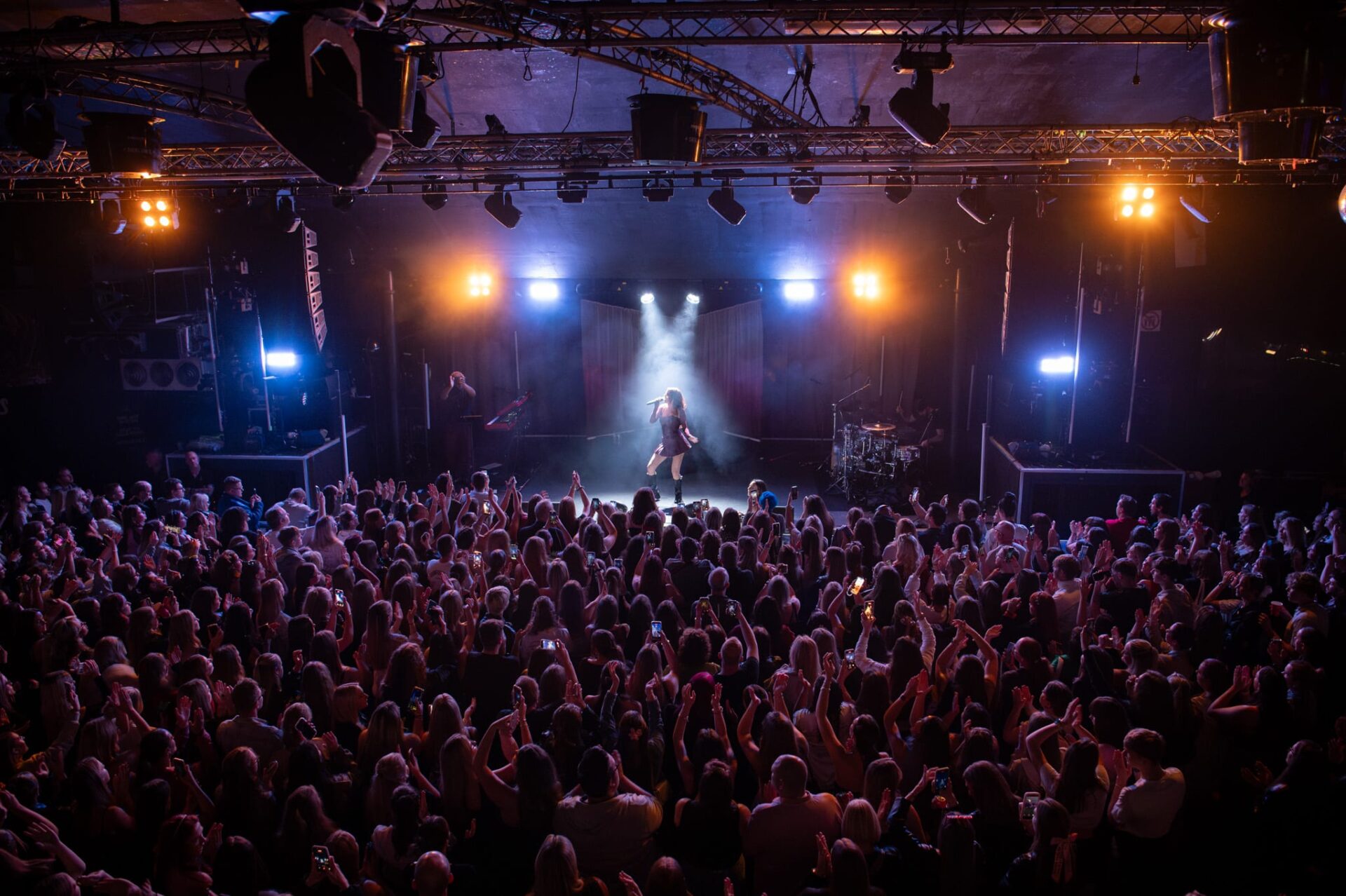 There’s a certain kind of scream that only happens right before Mimi Webb comes on stage, sharp, high-pitched, slightly panicked, like people genuinely think they might combust if they don’t hear the first note immediately. Rock City felt like it had been holding its breath all night, and the second those lights dropped, the place erupted.