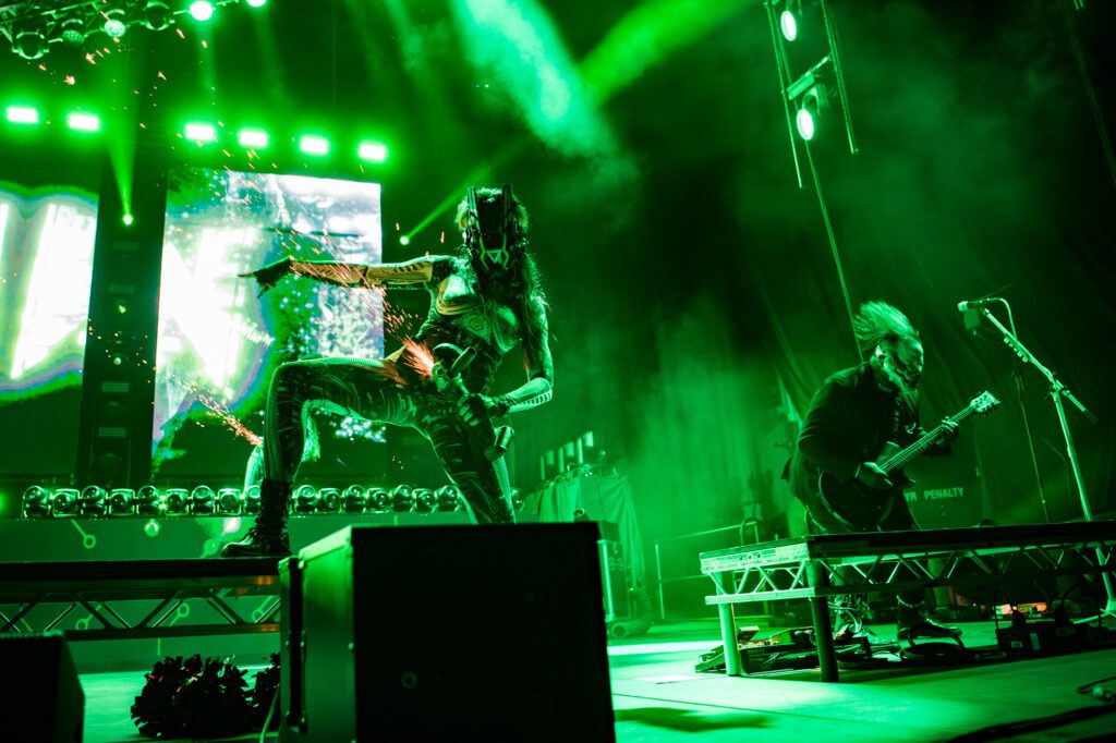 From there it was relentless. ‘Disguise’ had everyone clapping and headbanging in sync, ‘Slaughterhouse’ delivered huge call-and-response screams, and the Cherry Bomb dancers returned as rats under green strobes for ‘Rats’. ‘Cyberhex’ pulsed with futuristic energy, while ‘Another Life’ filled the room with phone lights and shouted lyrics.